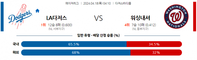 [야구] 04월 18일 LA다저스 vs 워싱턴 MLB 스포츠분석