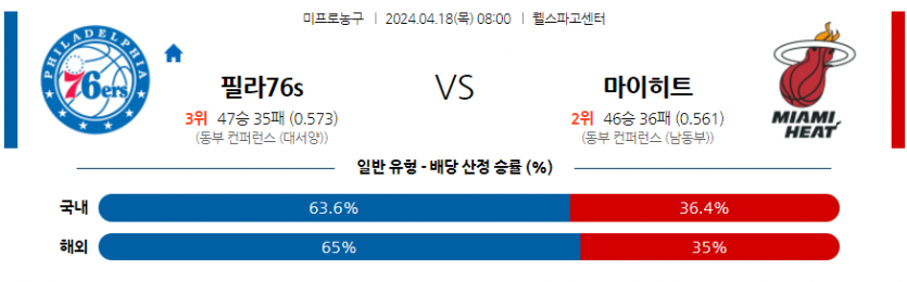 [농구] 04월 18일 필라델피아 vs 마이애미 NBA 스포츠분석